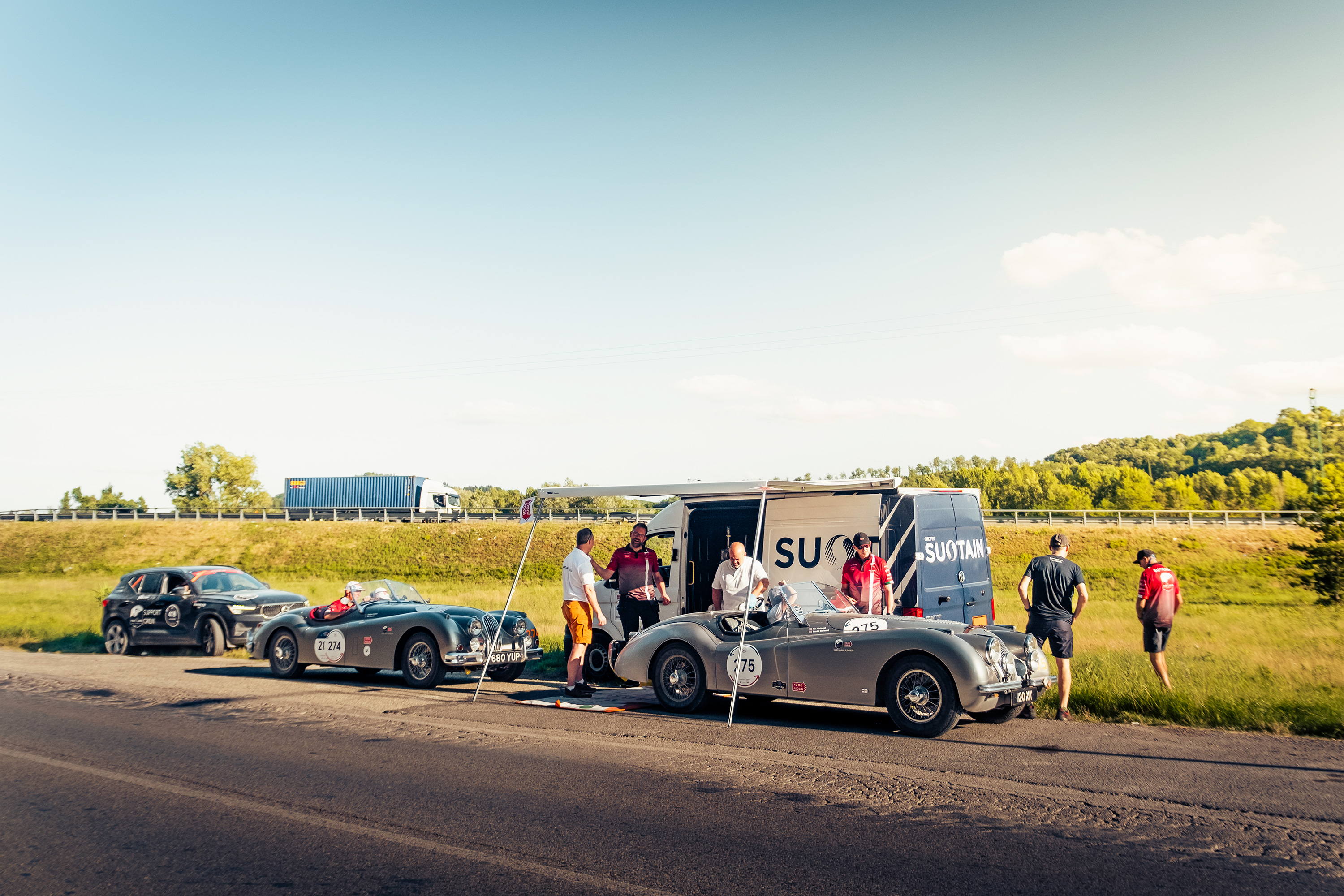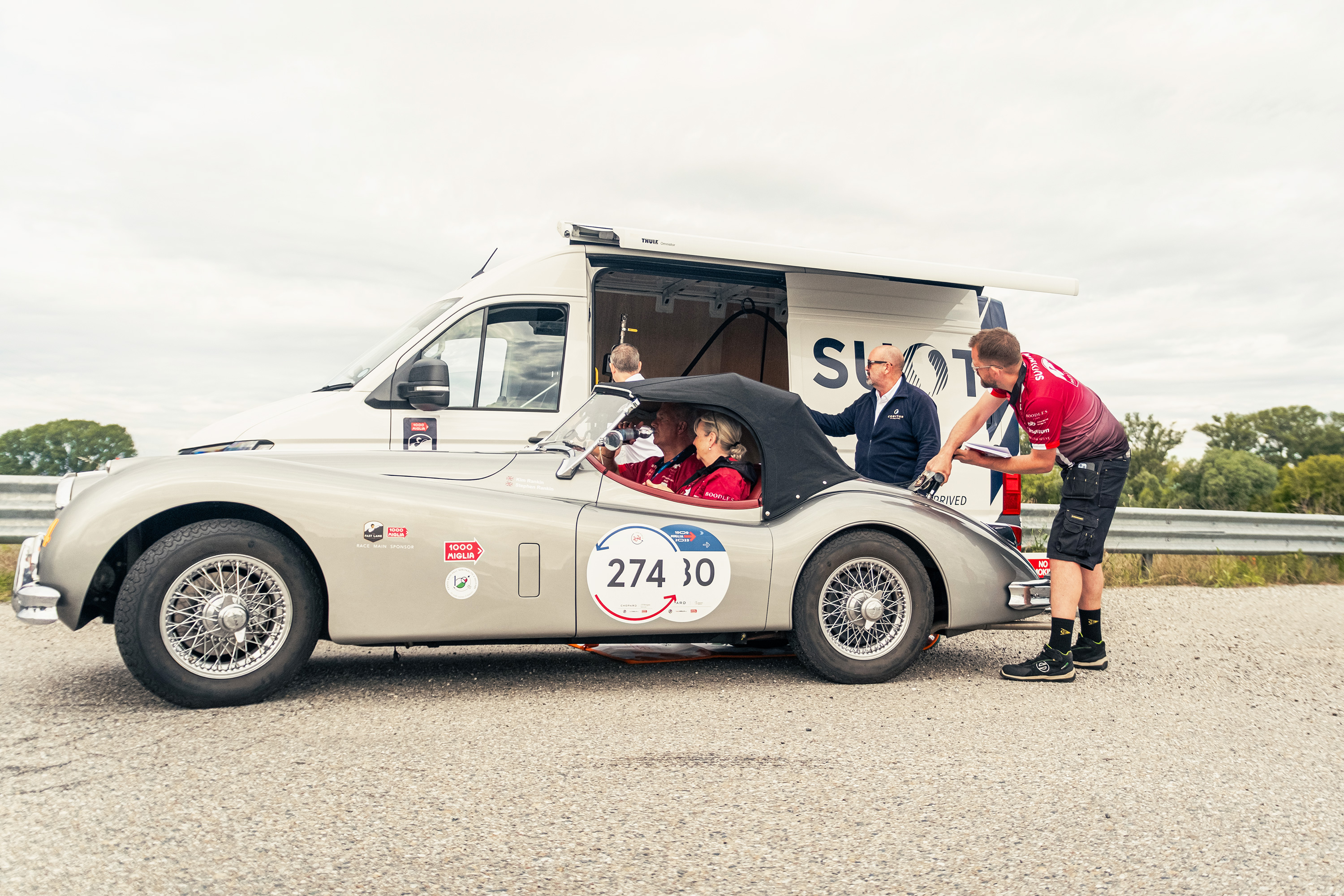 Despite the meticulous preparation, the team faced several logistical challenges to ensure the cars competing were kept “topped up”. The cars set off each day with a full tank and each car had it’s own dedicated technical support crew which carried 20 litre top-up cans of fuel – enough to get them to their lunch stop. Coryton ran a service vehicle containing the SUSTAIN fuel and were able to find suitable locations after each lunch stop to rendezvous with the race cars and support cars to re-fuel for the rest of the day.